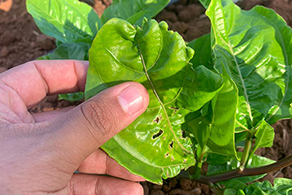 缺硼首先会导致出现垂直于叶片主脉并横穿叶片主脉的褪绿小条纹。随着缺硼变得更加严重,褪绿条纹会变得越来越长、越来越集中,最终在叶片中延伸,在某些情况下,下表面上会出现轻微的突起。